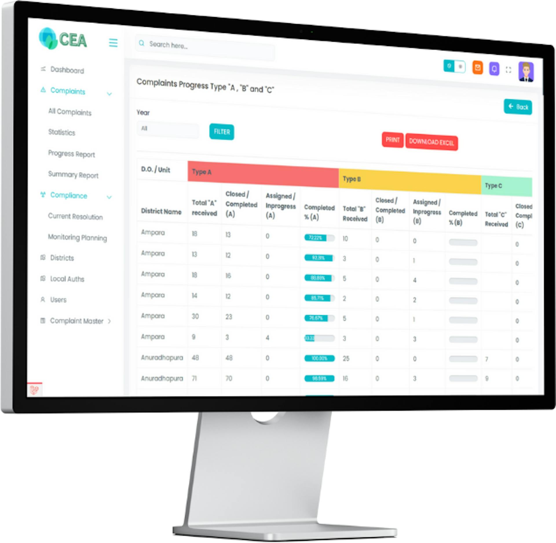 Complaint & Compliance management system for environmental complaints from the public.